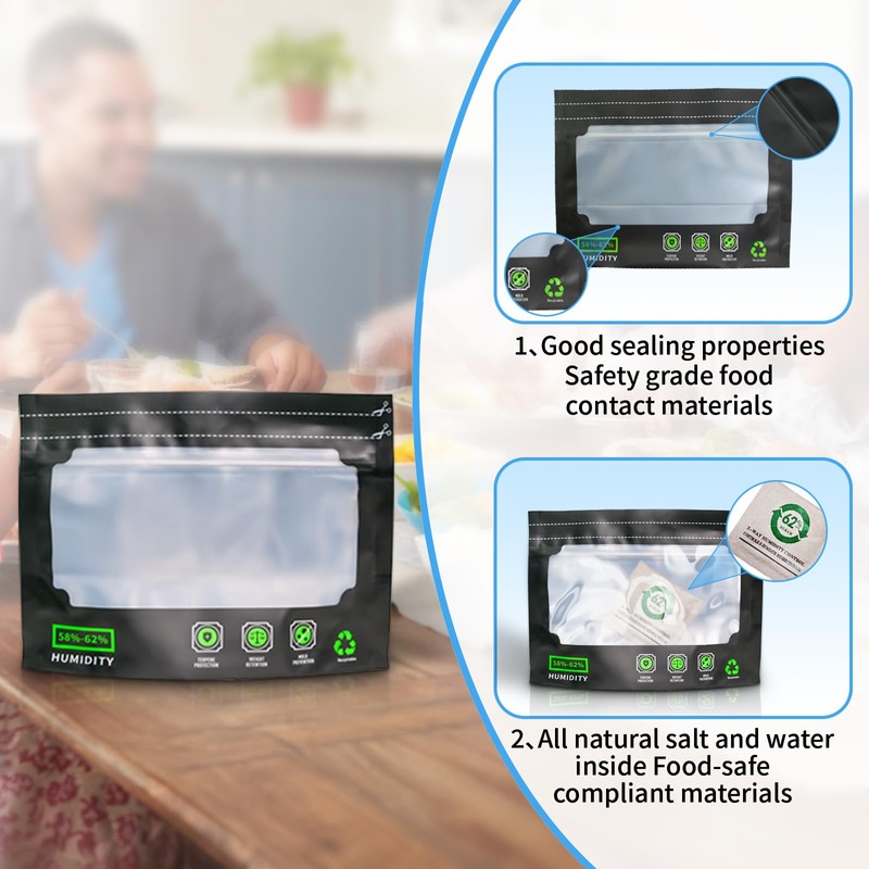 - Notice: Humidity pack can be used for 3-4 months, the actual service life depends on the frequency of opening, the moisture content of the product and the storage conditions. To ensure effective moisture regulation, sealable bags can be filled to a maximum of 75%.