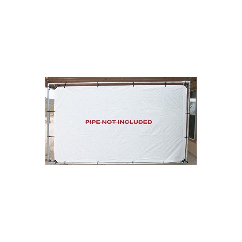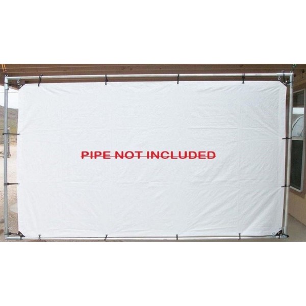 • Kit Includes: 5 x 7 White Heavy Duty Poly Tarp (Finished Size Approximately 4’6” x 6’6”), 3/4" Heavy Duty (Galvanized Steel) Fittings to connect your pipe to make the frame, Ball Bungees to attach the tarp to the pipe and rope to hang the kit