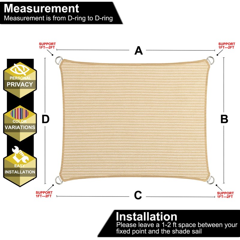 5' x 8' Beige Straight Edge Sun Shade Sail, Rectangle Awning Outdoor Shade Cloth Pergola Cover UV Block Fabric- Customized