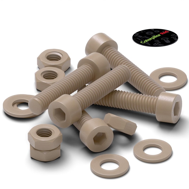 - 5x Bolts, 5x Nuts, 5x Washers. Material: PEEK. Type: Socket Head Bolts. Length: 20mm. Diameter: 4mm. Pitch: 0.7mm. SKU: 3R-X7LS-7MJJ.