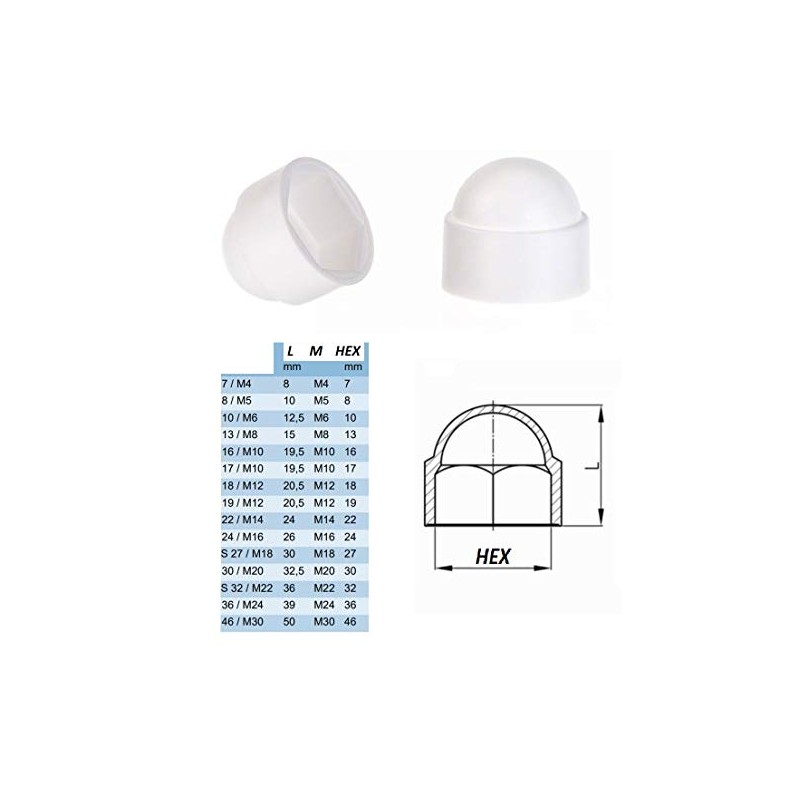5 x Protective Caps M5 to M30 White Cap Nuts Hexagonal Screws Cover Caps for Screw Cap Car Furniture Cover Nuts (M6 / Hex 10 mm)