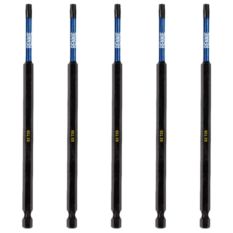 5 x Rennie Tools 150mm Long T25 TX25 Impact Screwdriver Driver Bits Set. Heavy Duty Magnetic Torx Screwdriver Bit Set. Black Oxide Coated Torx Impact Driver Bits. Torx Bit Set.