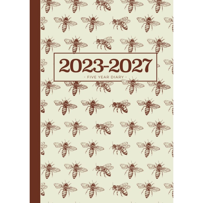 5 Year Diary 2023-2027 | A4 Classic Bumble Bees on Cream: Month to View Planner with UK Holidays, Vision Board, Moon Phases, Birthdays and Celebrations
