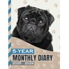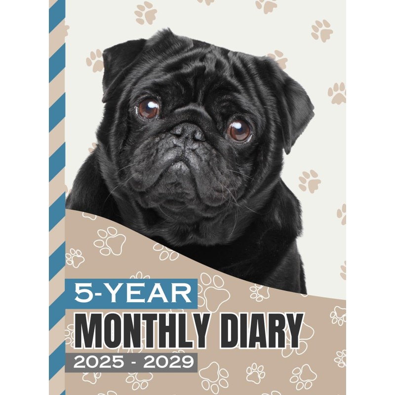 5-Year Monthly Diary 2025-2029: Hardcover / 8.5x11 Daily Dated Notebook / Goal Planning Journal With To Do Lists / Personal Event Organizer Gift / Black Pug Dog Art on Paw Print Pattern Cover