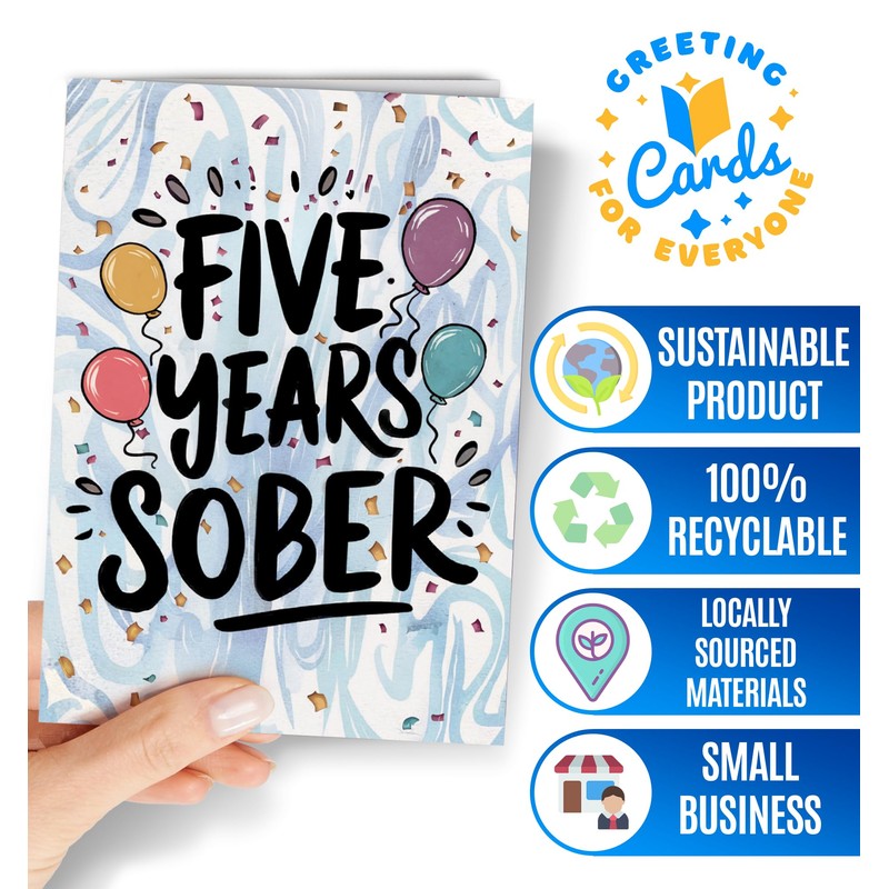 5 Year Sober Card - Five Year Sobriety Card - Congrats Sober Anniversary Celebration - 5 Soberversary for Men or Women - Addiction Recovery AA - Proud of You 5th Soberversary Birthday Milestone