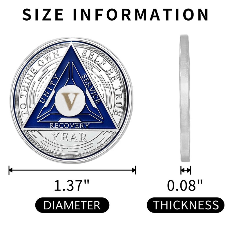 - 🎉Material and Sizes - Sobriety coins made of silver plated iron. AA coins and medallions are lightweight and easy to carry. Each coin is about 1.37" in diameter and 0.08" thick, perfect for pocket, purse, or aa coin holder keychain.