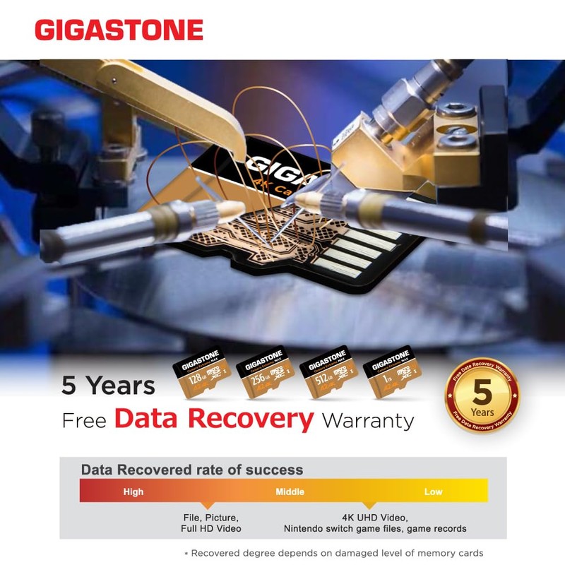 - [Support] Gigastone 5-year limited warranty including free data recovery. Free data recovery starting date of each series as following: 4K Camera Pro - June 1st, 2021 / 4K Game Pro - June 1st, 2021 / 4K Game turbo - June 1st, "2020"