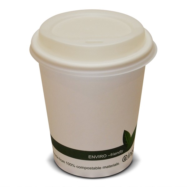 50 12oz (340ml) Disposable Biodegradable & Compostable Ingeo Paper Coffee Cups With White Compostable Sip Lids. These paper coffee cups are 100% compostable and biodegradable so they are very eco friendly. They are available in 12oz (340ml), and come packed in a sleeve of 50 cups together with a sleeve of 50 white lids. They are suitable for all types of hot drinks such as Coffee, Tea, Hot Chocolate Milk etc.