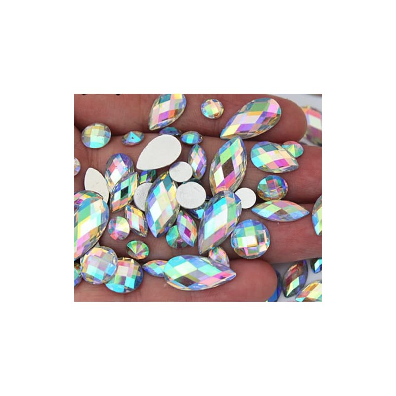 50 500 Flat Back Rhinestone Mix 4mm 8mm 13mm 14mm 15mm Teardrop Assorted AB Bead Diamante Gem Large Small Bag Crystal Teardrop Pear Nail Art Rhinestones Small Medium AB Iridescent (500 Wholesale lot)