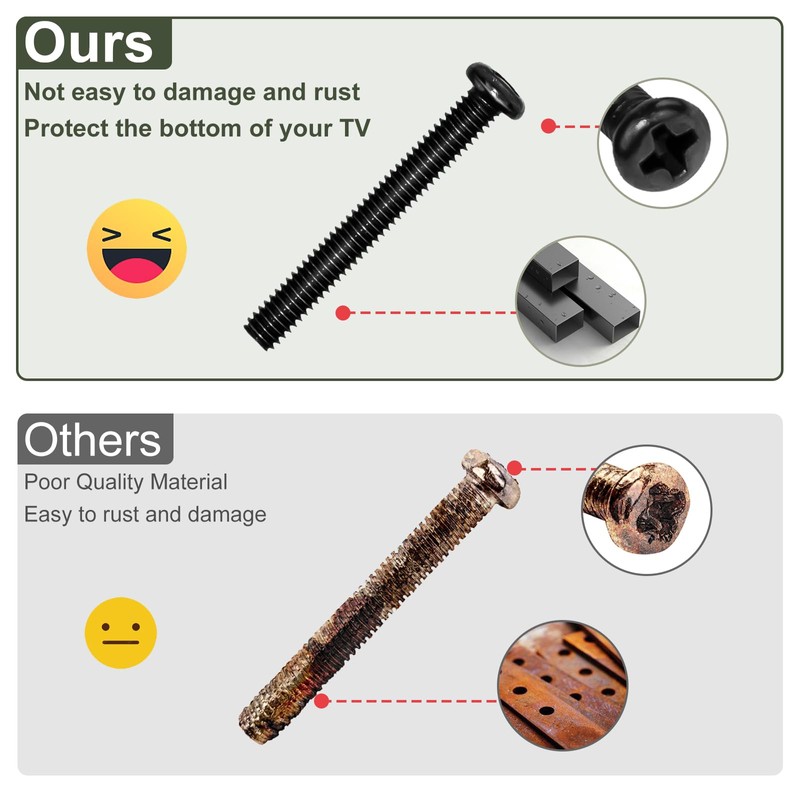 Thicker and bigger, TV stand for LG TV stand legs is using high-quality ABS materials, ensuring durability and longevity. Provide a safe and stable platform for your TV. With its sturdy construction, this TV stand is capable of supporting TVs weighing up to 80 lbs, providing ample strength. Replacement legs for LG TV stand replacement base. For LG 55 inch TV legs 50UP7700 50UP77006LB 50UP8000 50UP80006LA 55UP7500 55UP75006LF 55UP7700 55UP77006LB 55UP8000 55UP80006LA. Part numbers: AAN75851222 AAN75851221 AAN75851224 AAN75851223 MAM643660 MEZ64114730 AAN75851265 AAN75851266. Upgraded anti-rust screw kit, offers superior protection for the bottom of your TV, ensuring its longevity and stability. The TV feet for LG TV legs 55 inch are easy to assemble in a matter of minutes. No need to hire expensive professionals for help. Enjoy the convenience of a quick and easy assembly, and have your TV stand legs ready for use in no time. TV stand for LG TV feet eliminates the need for drilling into your walls, sparing you from any potential damage or unsightly holes, ensures you can maintaining the pristine condition of your wall. Guarantees safe transit and protection against damage or scratches. With a focus on quality packaging, ensures that your TV legs maintain their flawless appearance from the moment you unbox them.