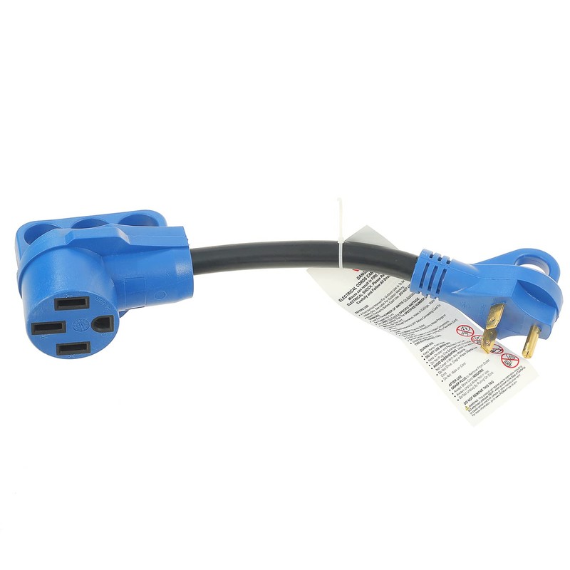 - LIMITATION : 30 to 50-amp rv adapter - NEMA TT-30P male plug to 14-50R female adapter for 50A recreational vehicle.12 inch length,10/3 AWG cords rated to carry 30 amps at 125 Volts/3750 Watts.After you hook up to the electrical source at the campground, make sure not to run several appliances at the same time.