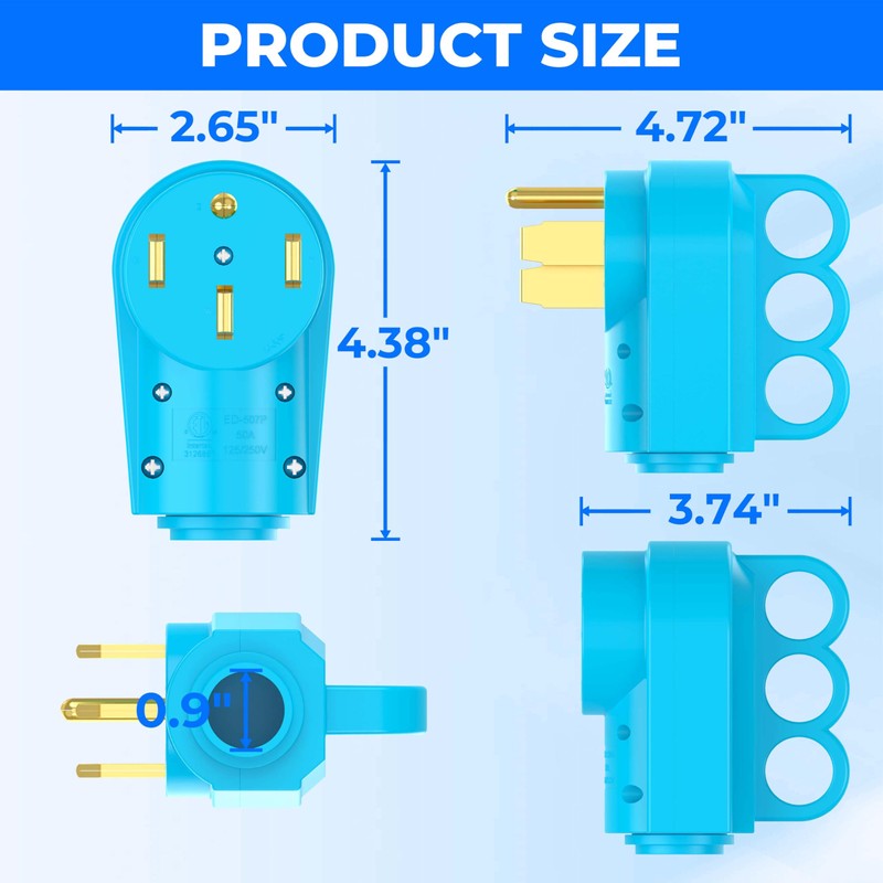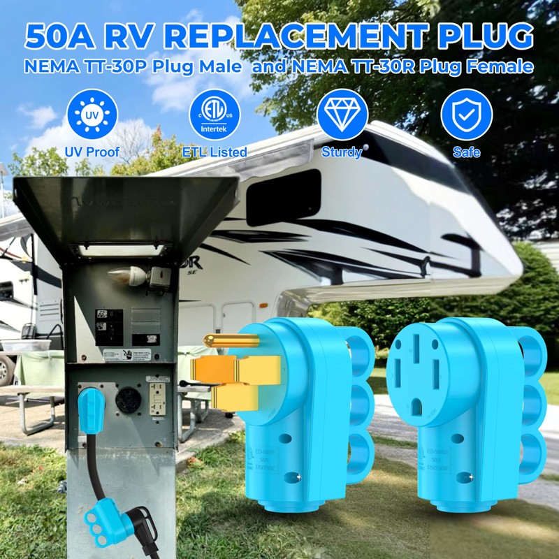 - NEMA 14-50R and NEMA 14-50P, 50 Amp RV male and female plug set