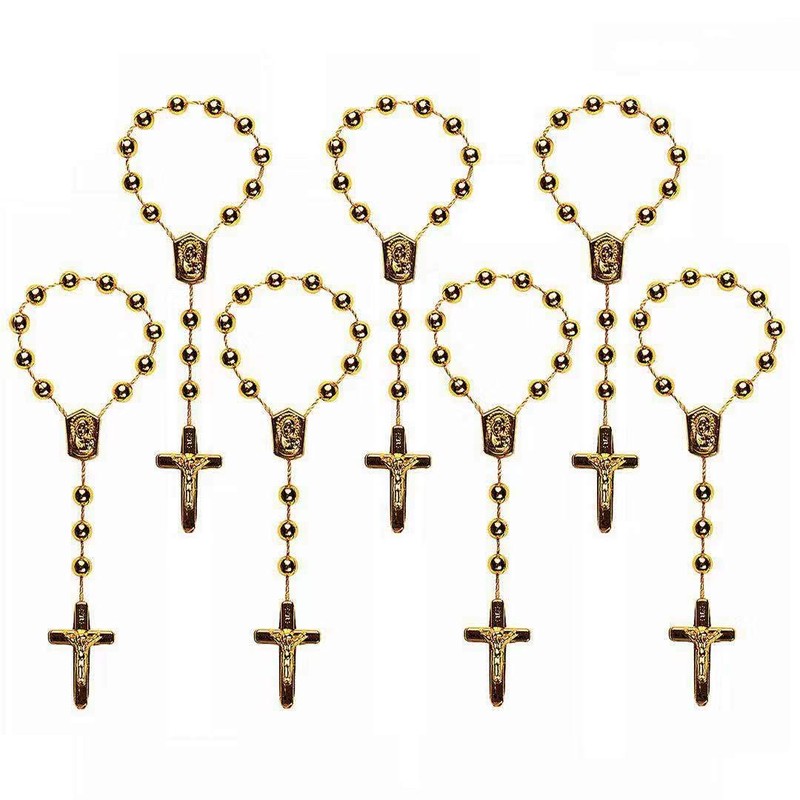 50 baptism rosary acrylic rosary mini rosary suitable for the first holy communion baptism party gift suitable for Recuerditos De BautismoChristening FavorsDecenarios finger rosary (Gold)