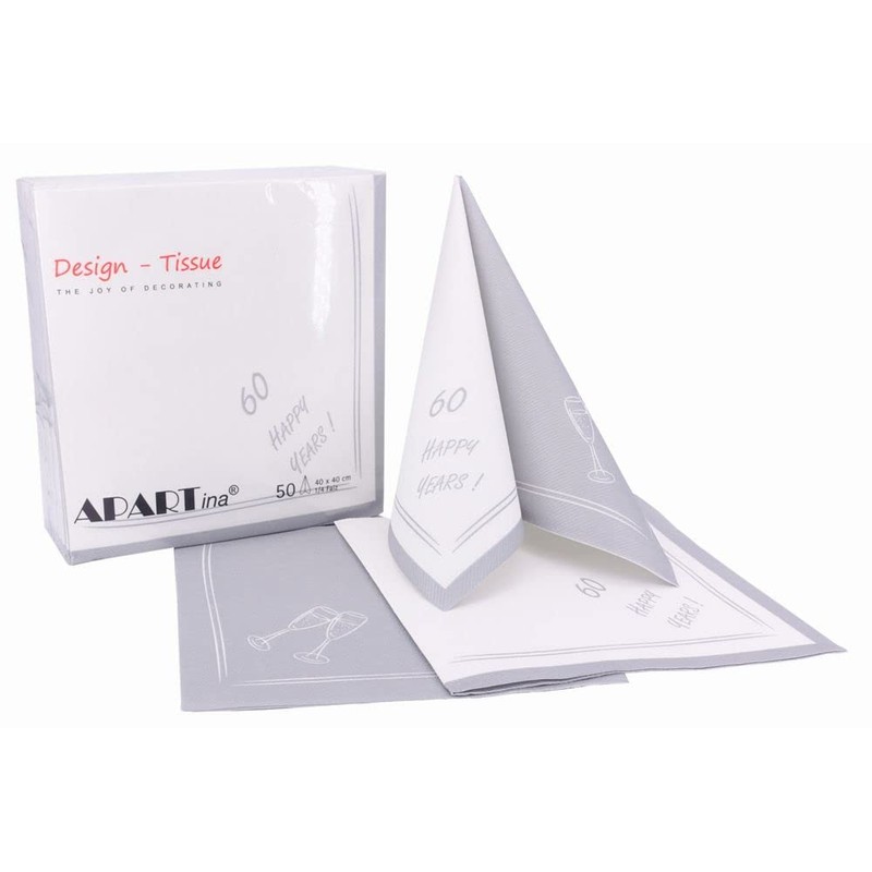 50 Birthday Napkins Fabric-Like 40 x 40 cm Happy Years, Colour: Silver, Years: 60