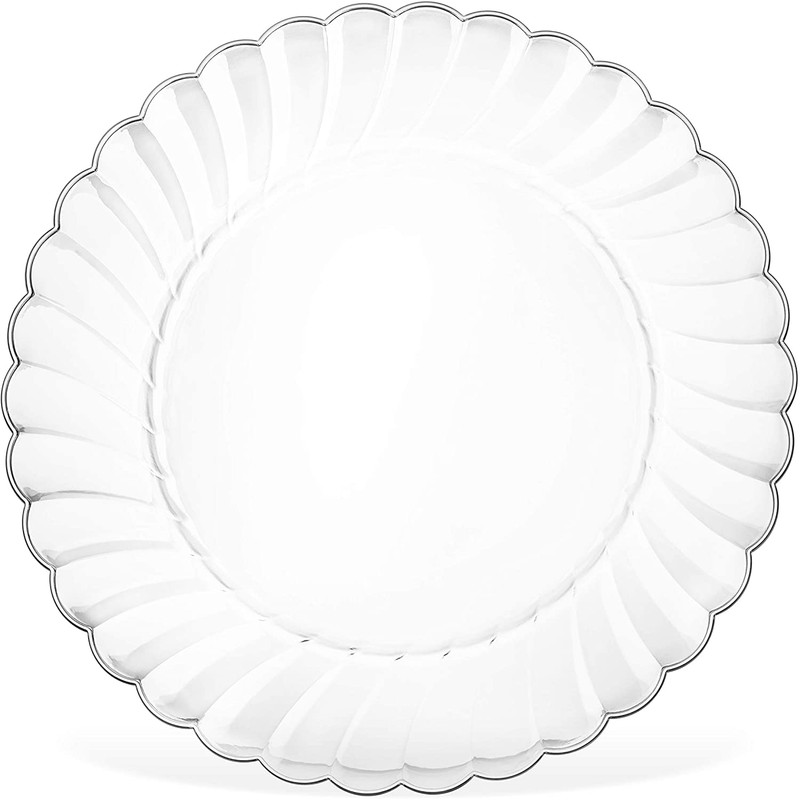 - ELEGANT & STYLISH: These clear plates are nothing like the cheaply made paper ones you may be used to. They are 9' large, have a slight depth and feature beautiful and elegantly designed curved edges.