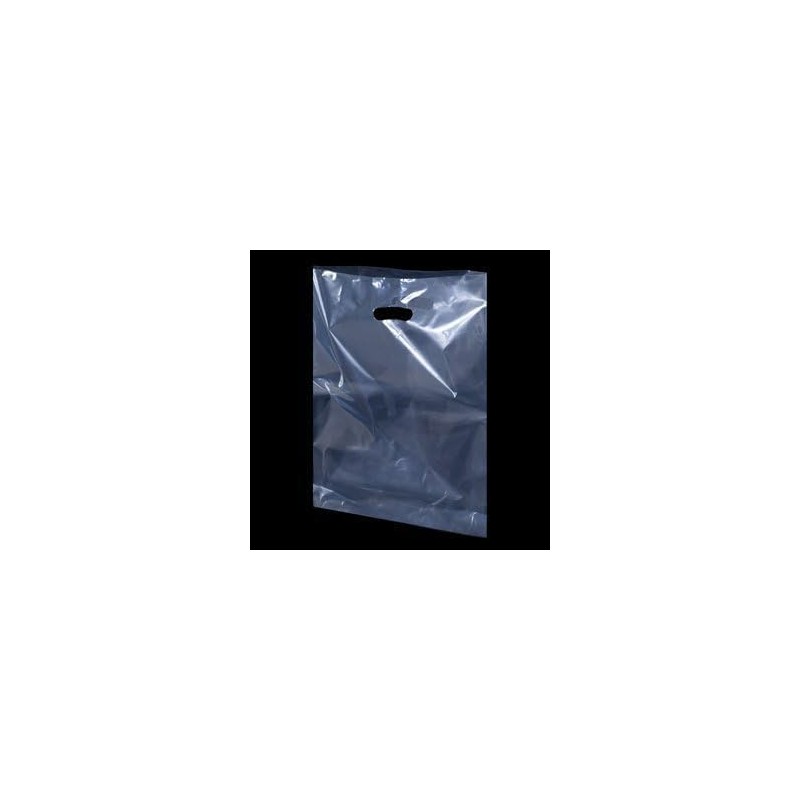 50 Clear Plastic Carrier Bag with Patch Handle - 10''X 12'' X 4''