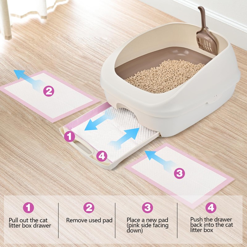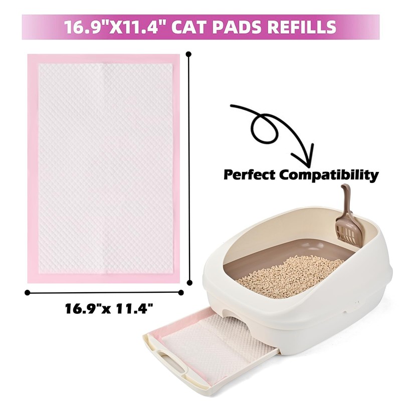 The disposable cat litter pads are specifically created to complement a litter box by absorbing extra liquid from the litter.