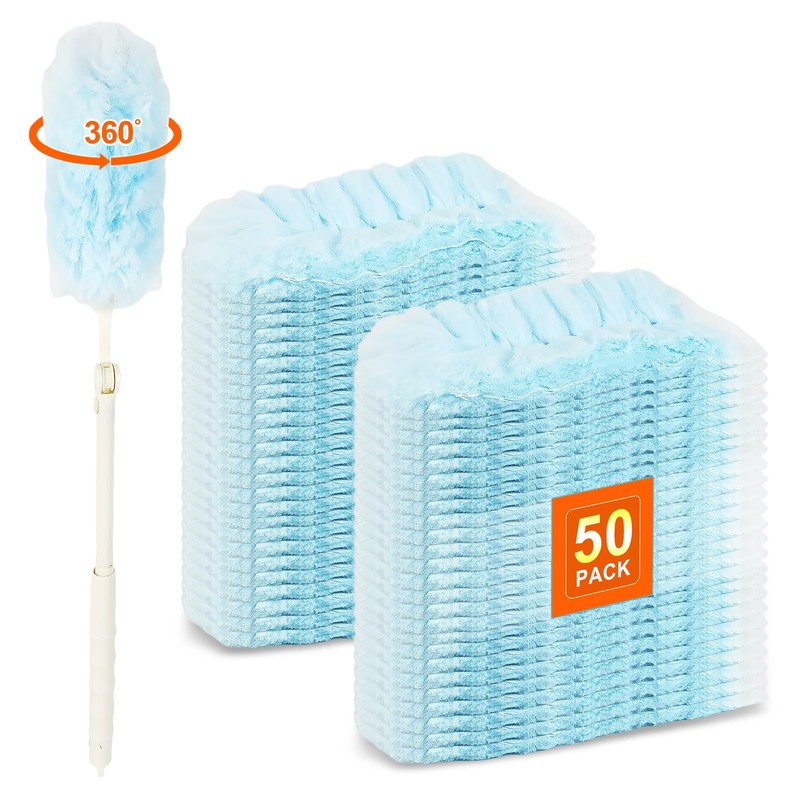 - Effective Dust Capture – Made of super soft microfiber, these disposable dusters attract and lock in dust, dirt, and pet hair for a thorough clean. Heavy duty duster refills Compatible with swiffer duster, the microfiber dusting kit unit comes with 50 replacement duster refills +3FT extended handle.