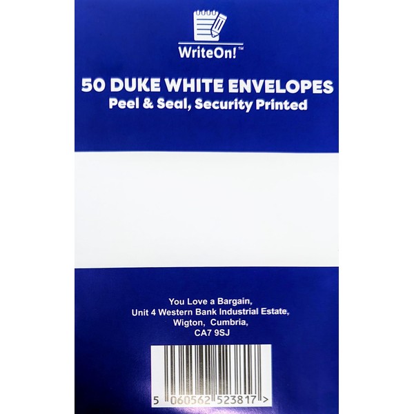 - 50 Duke White Envelopes - Peel & Seal - Security Printed