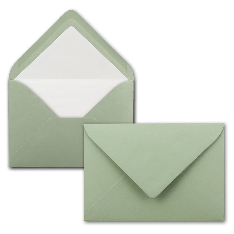 50 Envelopes in Eucalyptus (Green) with White Inner Lining – Envelopes in DIN B6 Format – 12.5 x 17.6 cm – Silk Lining – Gummed