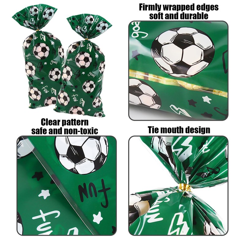 - Product contents: you will receive 50 pieces green candy bags with football pattern, size 27.5 x 12.5 cm, equipped with 50 pieces gold wire ribbons, very suitable for wrapping sweets and small gifts, especially suitable for football themed parties. and events.