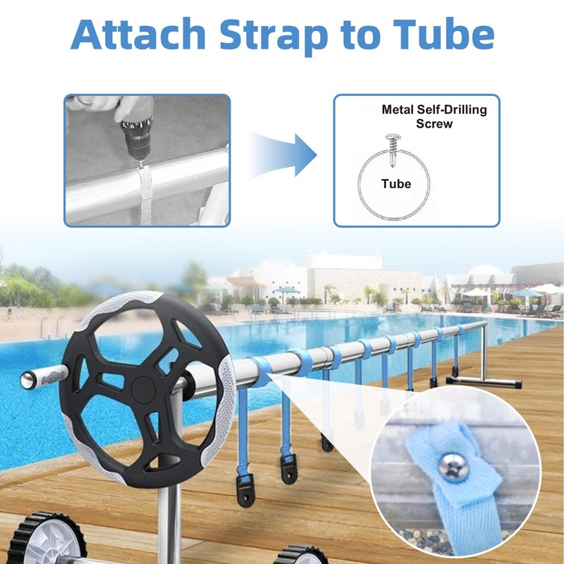 - Complete Attachment Kit for Easy Installation: This pool solar cover reel attachment kit includes 10 durable straps, 10 sturdy buckle plates, 10 stainless steel screws for attaching the straps to the reel tube, and 10 plastic screws for fastening the straps to the solar blanket. This solar pool cover strap kit includes everything you need for hassle-free installation. You can quickly assemble and start using your pool solar cover straps for reel.