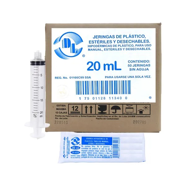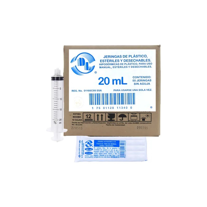 💉 JERINGAS DL 20ml LUER LOCK (SIN AGUJA) - CAJA CON 50 UNIDADES