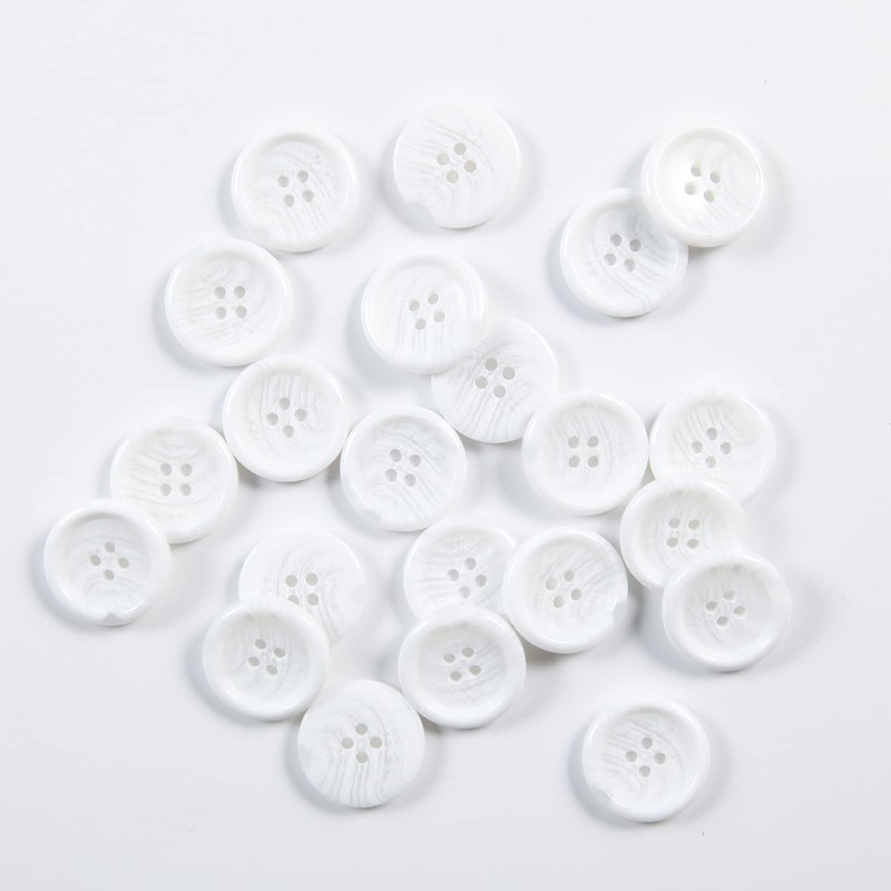 - 【Resin Buttons】 : These 1 inch white buttons for crafts are made of resin. They are smooth, waterproof and durable, and can be attached using glue, tape, thread, ribbon etc. The nice and sturdy sewing buttons are smooth, eco-friendly and non-fading. They have good wear resistance and high temperature resistance.