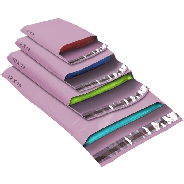 50 Mixed Size Pink Mailing Bags, Self Seal Strong Waterproof Poly Plastic Envelopes for Parcels, Packaging, Small, Medium, Large Mail, Shipping Courier Delivery Bags 4Sizes, Baby Pink