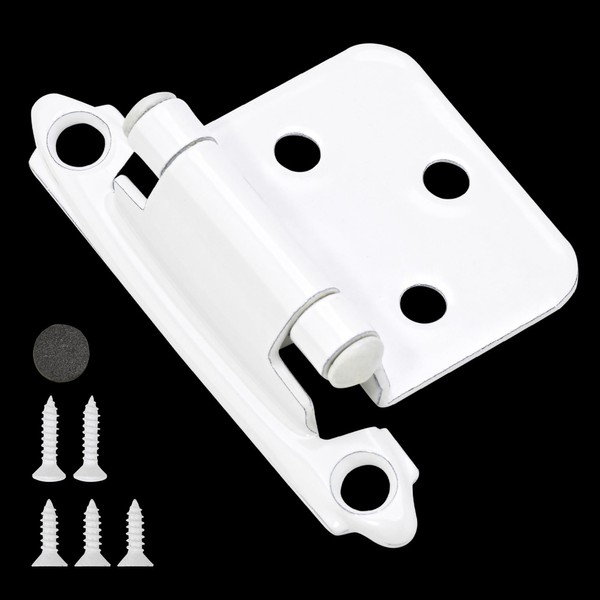 50 Pack 25 Pairs 1/2" Overlay Cabinet Door Hinges - White Self Closing Face Mount Cabinet Hinges