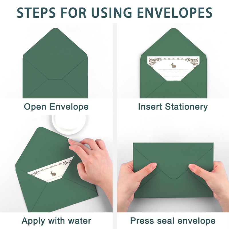 - Easy to Use: V- flap envelopes, water gummed flap, easy to use. To use, dampen the envelope sealing tape with water, then fold the sealing tape in half and press it down for a few seconds