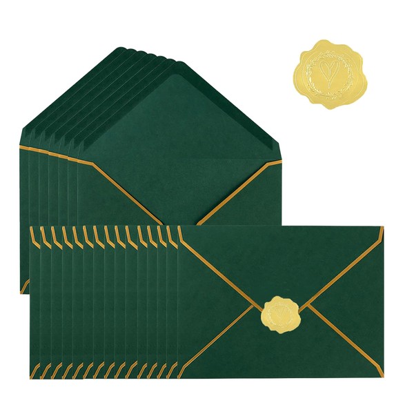 - Package Included: 50 dark green envelopes with gold border; 50 gold stickers, perfect for greetings and invitations