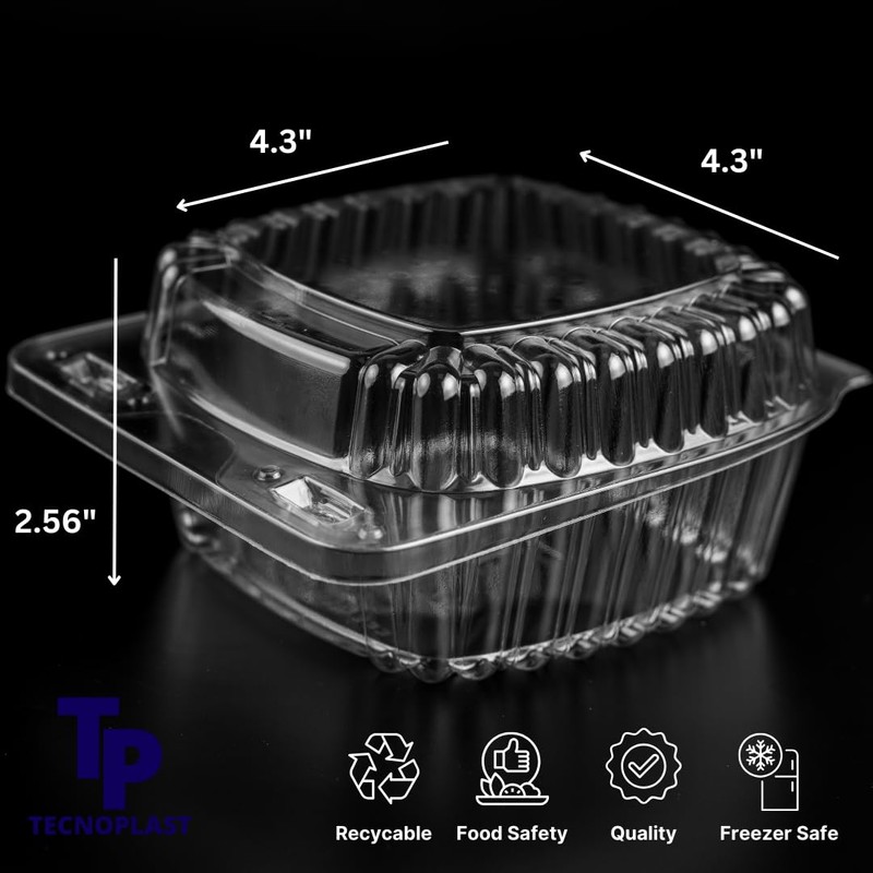 - Dimensions: Each small to go containers with lids measures approximately 4.3 x 4.3 x 2.56 inches making them perfect for party servings. It is perfect for dessert containers.