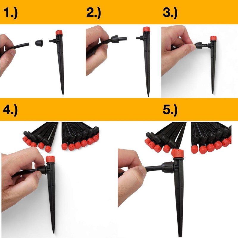 50-Pack Drip Irrigation Emitters Adjustable 360 Degree Drip Emitters on 5" with Stake for 1/4" Drip Irrigation Tubing Irrigation Drippers Ideal for (4-7mm) Garden Home Watering System