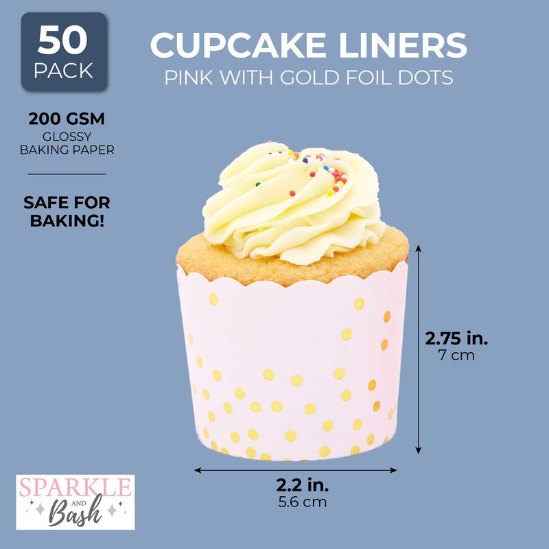 - What’s Included: Includes 50 pink and gold polka dot cupcake cups for baking