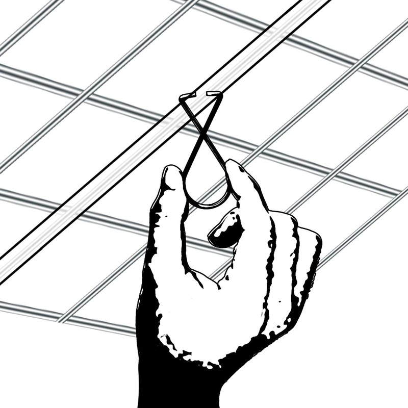 - Wire T-bar hangers: 0.15 cm wire diameter, each hanger was designed to hold up to 10 pounds