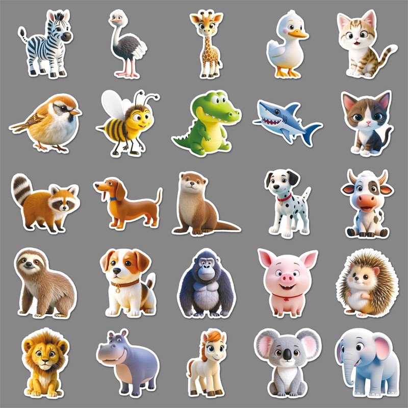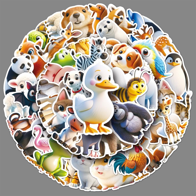 50 PCS 3D Animal Stickers Vinyl Waterproof Stickers for Skateboard,Laptop,Phone,Luggage,Computer,Bicycle,Water Bottle Decals for Teens,Adults,Boys,Girls,Kids,Children