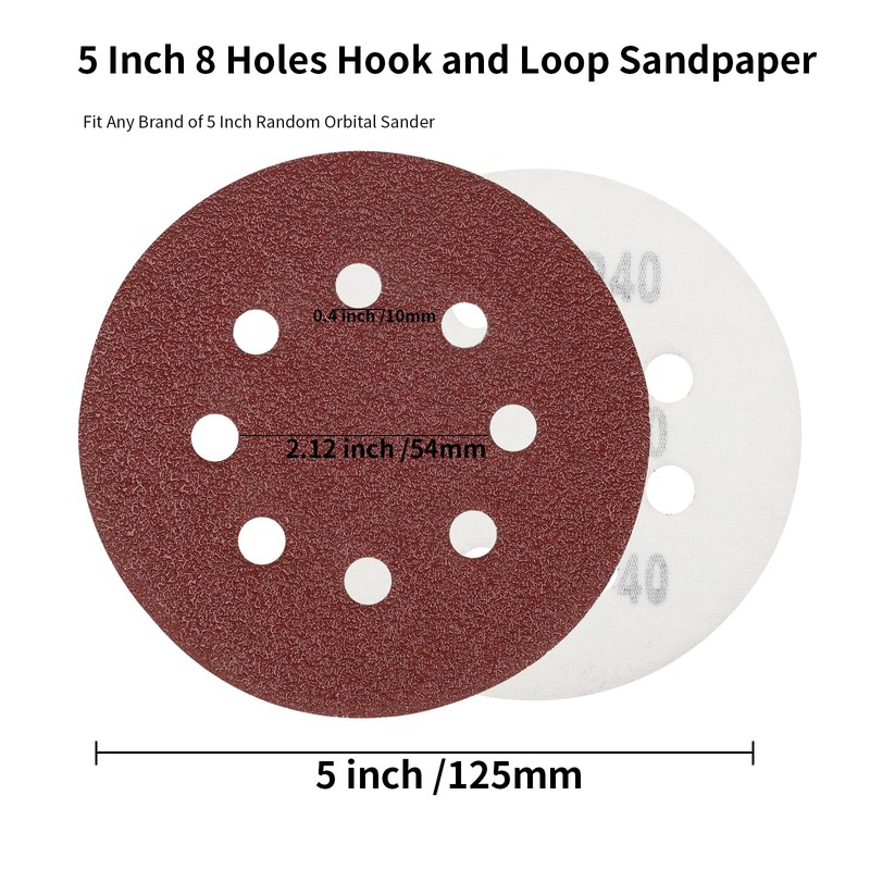 - Easy Installation & Removal: The 5 inch sanding pad has hook and loop backing ,which makes it easy to be installed or replaced, preventing it from slipping off when in use. The 8-hole design prevents clogging. Grit number is market on the back of each sanding disc, it will help you to find correct sanding pads quickly.