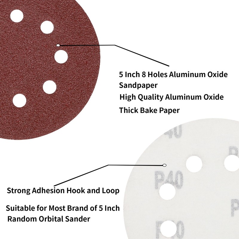 - Superior Quality and Durability: Our 5 inch sanding disc is made of premium aluminium oxide abrasive, featuring a coating for enhanced durability and optimal performance, making the 5 inch orbital sandpaper more durable and anti-static long-lasting.