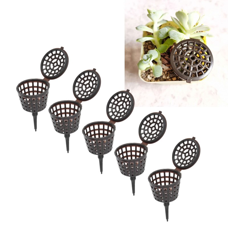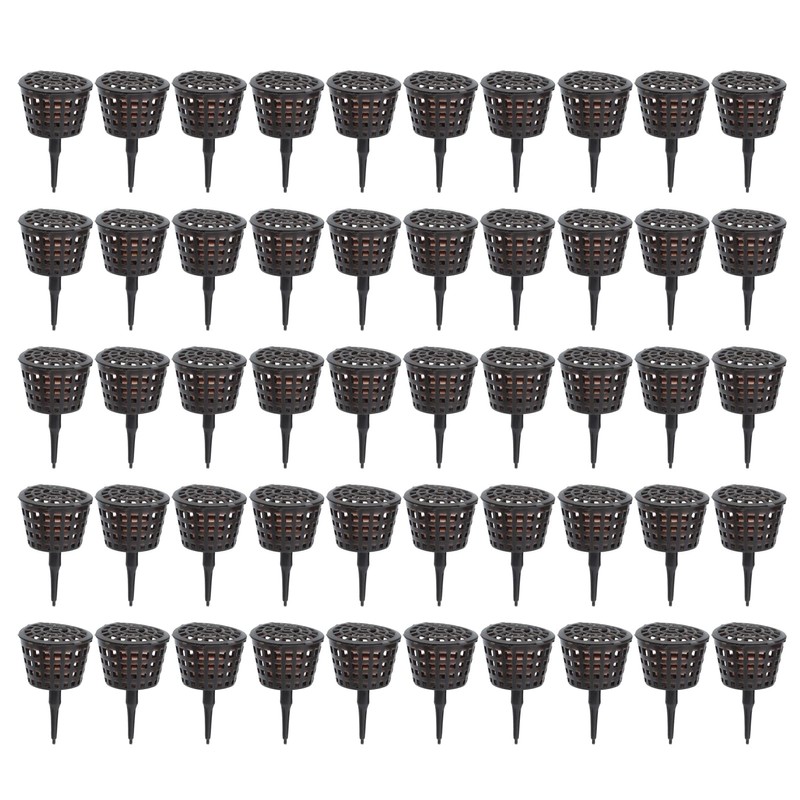 50 Pcs Brown Plastic Fertilizer Mesh Basket with Lid Planting Food Net Pot Garden Nutrition Cups for Succulent, Orchid, Bonsai Fertilizer