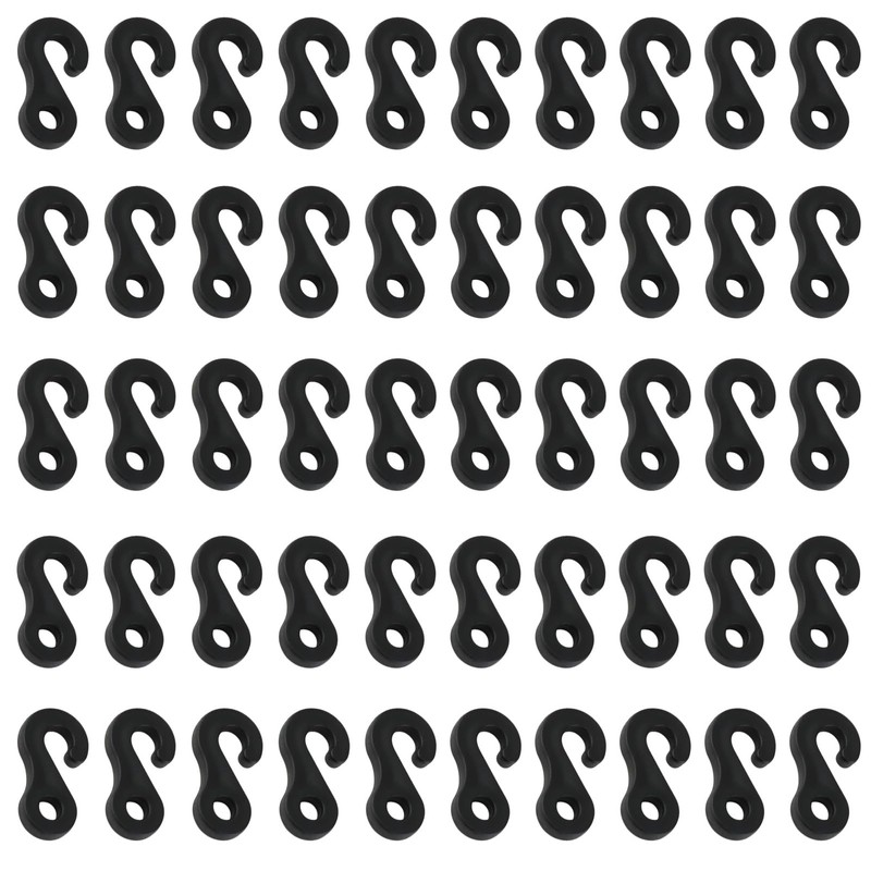 <p>Enhance your outdoor experience with this 50 piece set of durable camping tent hook plastic S hooks. Perfect for securing tents, canopies, tarps and bungee cords, these hooks provide reliable support for campers, hikers and outdoor enthusiasts. The lightweight, compact design ensures easy transport and fast setup in any outdoor scenario</p><p><br></p><p>Product Name:</p><p>50 pcs camping tent hook plastic s hooks for outdoor use</p><p><br></p><p>Product Size:</p><p>Each hook measures 1.75 inx 0.74 in with a hole diameter of 0.23 in and thickness of 0.19 in</p><p><br></p><p>Material Details:</p><p>Made from high quality plastic, these hooks are lightweight, durable and resistant to outdoor elements such as rain, sun and wind. Perfect for long lasting use without breaking or bending</p><p><br></p><p>Package Quantity:</p><p>50 pcs per set. Ideal for large setups or multiple outdoor activities</p><p><br></p><p>Suitable Scenarios:</p><p>Perfect for camping, hiking, backyard awnings, festival tents, DIY projects, hanging lights, securing backpacks or fixing tarps. Versatile enough for any outdoor situation requiring secure attachment points</p><p><br></p><p>Usage Instructions:</p><p>Simply hook onto ropes, bungee cords, or tent drawstrings for quick and stable setup. Keep out of reach of children when not in use. Inspect hooks before use to ensure they are not damaged or cracked to prevent safety hazards</p>