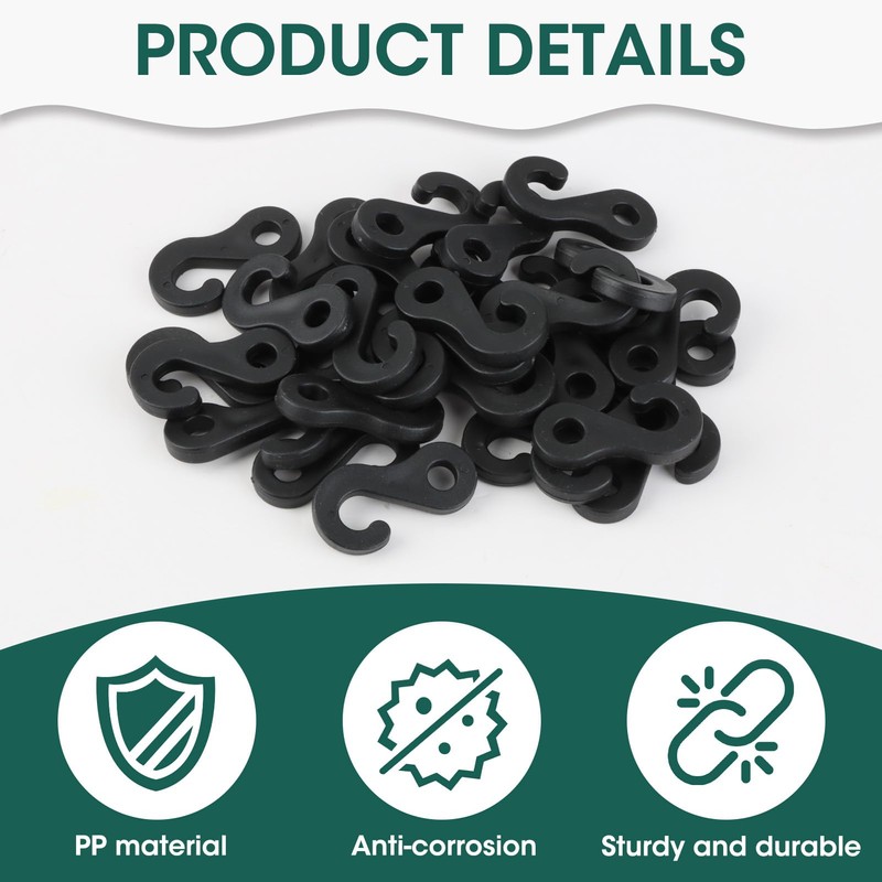 - Easy to Use: No tools are required. Simply hook the plastic s hooks onto ropes or cords to fix tents and canopies efficiently. Lightweight design ensures easy handling and quick installation, saving time and effort in any outdoor activity