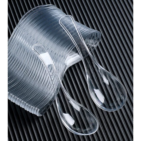 - Clear asian disapossible soup spoons with dramatic lines packaged 50 pcs.