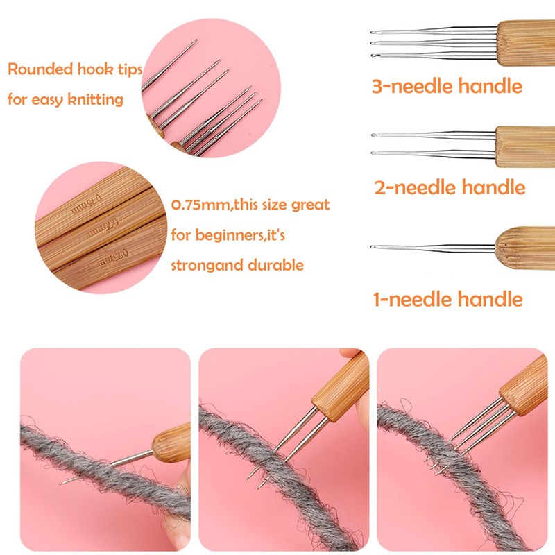 - What you'll get: This set of hair crochet hooks consists of 3 0.75mm bamboo handle dreadlocks tools (1 piece each of single, double, and three 0.75mm), 4 different sizes of lock hooks and 1 wooden curved lock hook, 40 dreadlocks rhinestone headband decorations, and 2 hair lock tools. The whole kit will be in an orange storage bag.