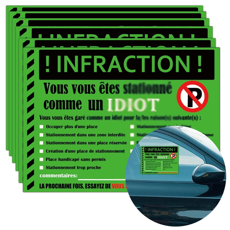 - Attention You parked like an Idiot Moron for one or More Reasons,Just Tick the applicable one at sticker to post your massage to violators’ for easy efficient vehicle parking area control.You can also write your own comments in writable area to tell someone why they park like an idiot.