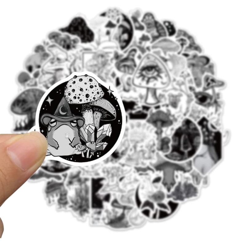 50 PCS Goth Style Mushroom Stickers Pack Gothic Stickers Aesthetic Black&White Waterproof Decorative Vinyl Stickers for Guitar, WaterBottle, Luggage, Phone, Notebook