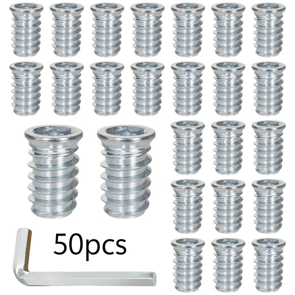 - 【✅Practical Quantity】You will get 50pcs M10x25MM threaded inserts, 1*Hex Socket Nut Inserts, which is suitable for threaded inserts for wood, including hardwood, cork and composite wood. It can effectively prevent falling due to torsion or vibration and has good tensile strength and stable connection.