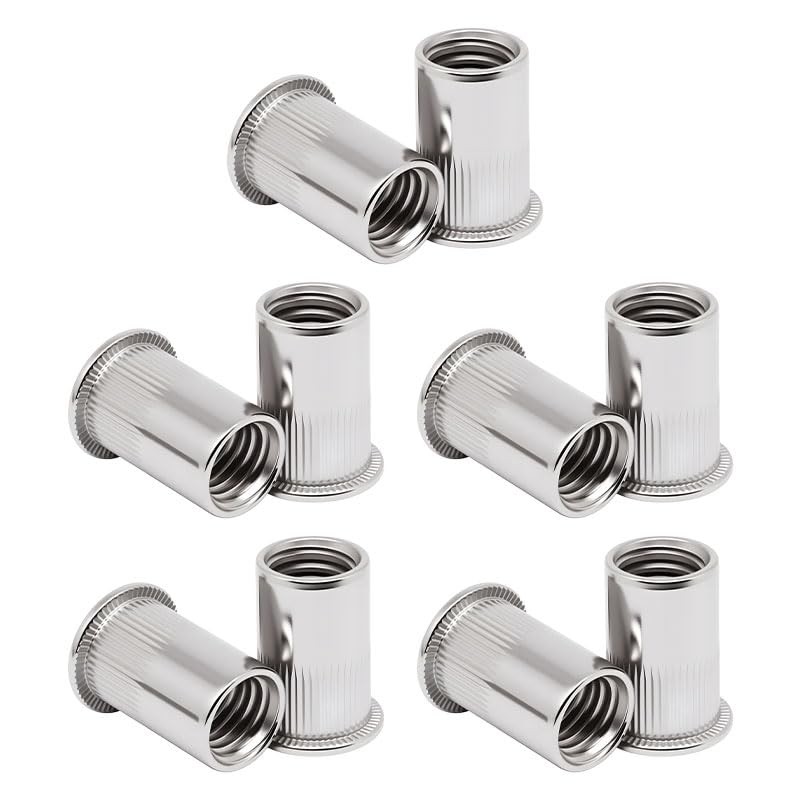 - 【COMPATIBILITY SIZE】Available in M3/M4/M5/M6/M8/M10/M12, the package includes 50 rivet nuts. A variety of sizes perfectly meets your diverse needs for threaded inserts in different projects.