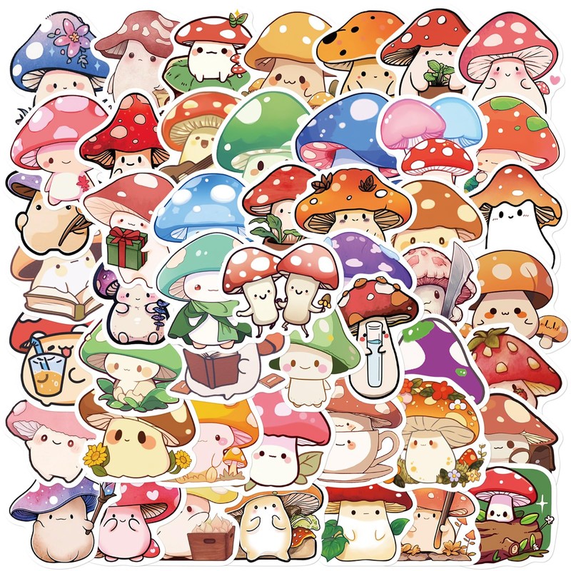50 Pcs Mushroom Cartoon Stickers for Kids Teens Adults Chanterelle Aesthetic Vinyl Decal Pack Water Bottle Laptops Stationery Scrapbook Kawaii Kids Classroom Prize Stickers (Aaric)