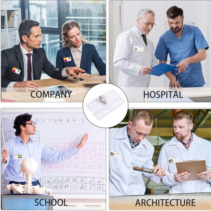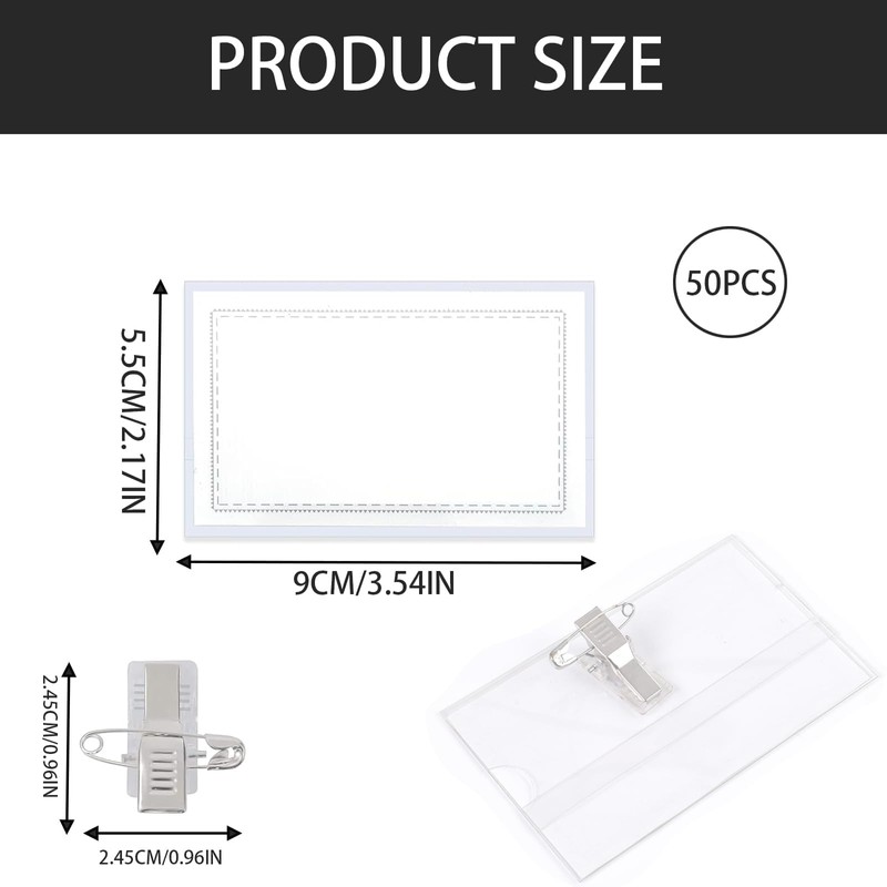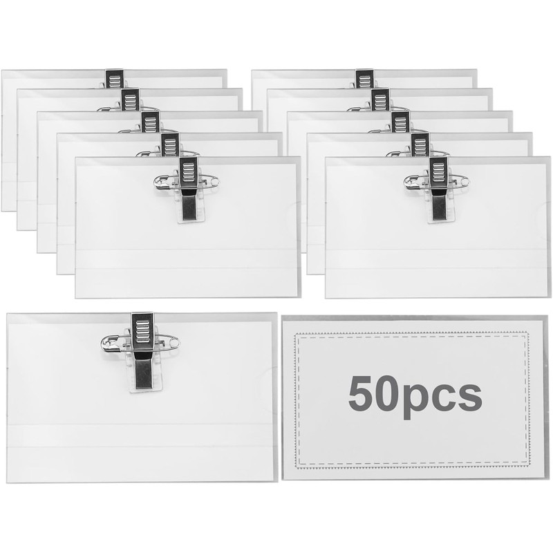 50 Pcs Name Badges for Work, mit Clip und Anstecknadel, Praktische Ausweishalter für Schule, Unternehmen, Konferenzen, Business Events, Wiederverwendbare Namensschilder